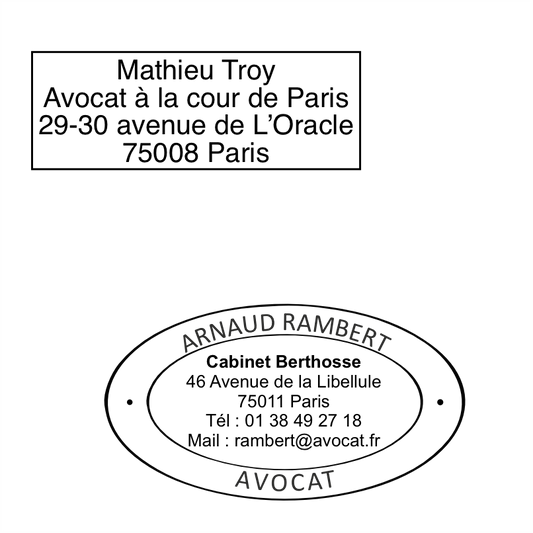 Tampon pour avocat, huissier, notaire et autres métiers de loi avec toutes les informations essentiels pour numéroter vos pièces, communiquer vos coordonnées et signer vos documents officiels